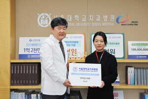 [덴탈뉴스=홍혜진 기자] 박소라(아이미즈치과) 원장이 장애인구강진료 향상을 위해 써 달라며 서울대학교치과병원(병원장 이용무) 부설 장애인치과병원 중앙장애인구강진료센터에 지난 11월 18일(화), 1천만 원을 기부했다. 박소라 원장은 “치과 진료가 가장 필요하지만 가장 멀게 느껴지는 분들에게 작은 보탬이 되고 싶었다. 이번 기부가 장애인 환자분들이 치료를 포기하지 않도록 힘이 되길 바란다"고 전했다.이번 기부는 2025년 서울대학교치과병원 발전후원회 ‘서포터즈’ 프로그램의 첫 번째 공식 나눔 행사로 진행된 기부금 전달식으로, 박소라