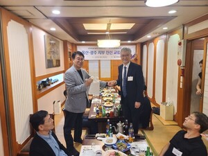 [덴탈뉴스=홍혜진 기자] 광주지부(회장 박원길)는 9월 27일(토)∼28일(일) 1박2일 울산지부(회장 강경동)를 방문하여 상호 친선과 교류를 다지는 뜻깊은 시간을 가졌다. 이번 방문은 지역 치과계의 우호 증진과 협력 강화를 위해 마련된 자리로, 양 단체는 치과계 현안과 발전 방향을 공유하고 상호 교류 확대 방안을 논의하였다. 특히 회원 복지 증진, 지역 구강보건사업 활성화, 학술 및 문화 교류 등 다양한 분야에서 협력할 수 있는 계기를 마련하였다. 울산지부가 마련한 저녁 환영 만찬자리에 광주지부에서는 박원길 회장외 10명의 임원진