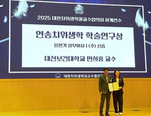 [덴탈뉴스=홍혜진 기자] ㈜신흥이 후원하고 대한치위생학과교수협의회(이하 치위생교수협)가 제정한 ‘제10회 연송치위생학 학술연구상’ 수상자로 민희홍(대전보건대 치과위생과) 교수가 선정됐다.시상식은 지난 7월 1일, 대전보건대학교 청양홀에서 열린 2025년도 치위생교수협 하계연수에서 진행됐다.민 교수는 ‘치위생학 교육에서 전문직 간 교육 도입을 위한 요구도 분석’을 주제로 오는 2026년 6월까지 연구를 수행할 예정이다. 연구 결과는 2026년 하계연수에서 발표되며, 수상자에게는 상패와 함께 연구비 700만 원이 수여됐다.‘연송치위생학
