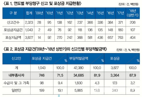 1인에게 역대 최고금액 5천만원 지급…내부고발자 최고 2억원