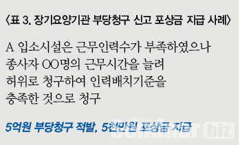 또한 공단은 기관의 자율적 시정을 유도하기 위해 부당청구 주요사례<표 3>를 노인장기요양보험 홈페이지에 게시하는 등 장기요양기관의 부당청구 사전 예방을 위해 노력하고 있다고 전했다.