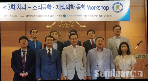 한국조직공학재생의학회(회장:이종원)가 지난 22일(토) 주최한 제3회 치과-조직공학 재생의학 융합 워크숍이 경희대학교 치과병원에서 열렸다. 이번 워크숍에서는 총 3가지 대주제로 연자들의 강연이 진행됐다. 먼저 ‘New Approach to Dental Tissue Regeneration’를 대주제로 마련된 첫 번째 순서에서 연자에 나선 윤형문(경희대 치전원) 교수는 ‘Serotonin 6 receptor controls bone development and repair via the Jab1-mediated BMP2 signaling pathway’에 대해 발표하면서 “Serotonin 6 receptor가 골아세포 분화, 뼈 재생 및 발달에 중요한 역할을 하고 있다”며 Serotonin 6 receptor가 골 질환에 대한 새로운 치료법의 목표임을 분명히 했다.