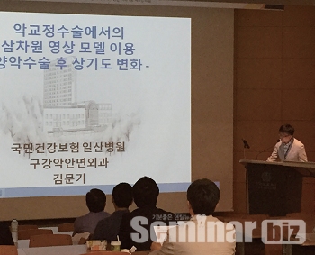 ‘수술 후 원활한 호흡을 고려한 턱교정수술’을 주제로 악교정 수술에서의 삼차원 영상 모델 이용 ? 양악수술 후 상기도 변화를 부주제로 하여 김문기(구강악안면외과) 교수가 강의를 진행했다. 턱교정 수술에 대한 임상 및 연구 활성화와 대국민 홍보를 목적으로 개최된 이번 학술집담회는 대한양악수술학회의 정회원만을 대상으로 열렸다.