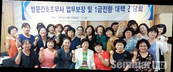 방문간호 간호조무사들은 지난 8월 29일(토) 경기도 모처에서 중앙회, 서울시회와 경기도회 임원진을 초청해서 간호인력개편 의료법 법안 진행 경과에 대해 설명을 듣고, 이대로 법이 통과되면 방문간호 간호조무사들의 업무제한은 물론 1급 전환의 기회마저 원천 봉쇄된다는 것에 분노하고, 중앙회 차원의 대책마련을 촉구하였다.
