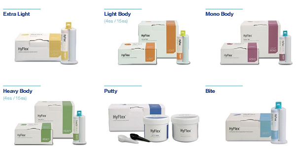 이번 라인업 확대는 ▲교합 인상재 'HyFlex Bite' ▲고흐름성 인상재 ‘HyFlex Extra Light Body' ▲반죽형 인상재 ‘HyFlex Putty’▲대용량 Econo Pack이다.