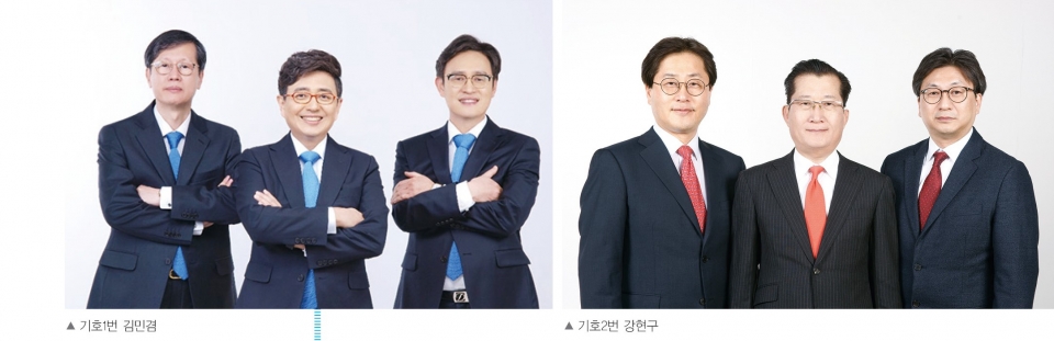 추첨 결과 기호 1번 김민겸 회장후보 (김덕·김응호 부회장후보), 기호 2번 강현구 회장후보(함동선·조정근 부회장후보)가 결정됐다.<사진>