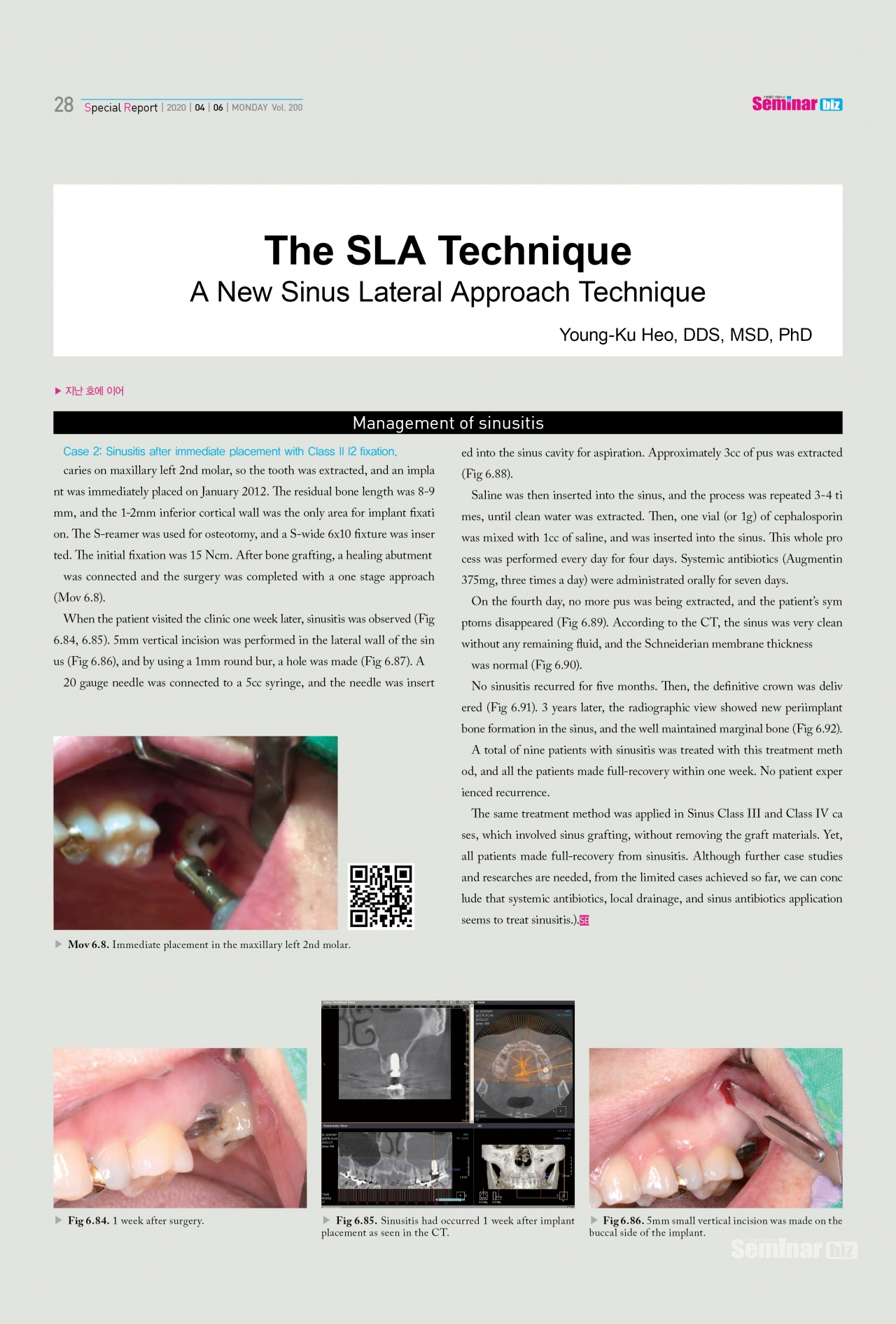 A New Sinus Lateral Approach Technique 좋아요0훈훈해요0슬퍼요0후속기사 원해요0 The SLA Technique SLA Case 1. 8-Year Result of a Lateral Window Opening with a LS-reamer and a Semilunar Flap 키워드 #Management of sinusitis #The SLA Technique #세미나비즈 Young-Ku Heo, DDS, MSD, PhD webmaster@seminarbiz.kr 다른기사 보기 저작권자 © 덴탈뉴스 무단전재 및 재배포 금지 당신만 안 본 뉴스 [알파베러정재욱대표] 좋은 제품 검증된 제품만 모은 알파베러 유한 evertis 임플란트 성공 위한 워크샵 진행 “미용치과 안티에이징이 치과의 블루오션” 덴탈스튜디오, 블랙니들홀더 출시 서울대학교치과병원, 키르기스스탄 장애 어린이위한 사랑의 의료봉사 펼쳐 연송캠퍼스 개관10주년 기념식 및 SID 명예의 전당 제막식 네오바이오텍, 즉시로딩 임플란트 ALX-IT 11월 세미나 전국 진행 [알파베러정재욱대표] 좋은 제품 검증된 제품만 모은 알파베러 개의 댓글 회원로그인 작성자 비밀번호 댓글 내용입력 댓글 정렬 최신순 추천순 답글순 BEST댓글 BEST 댓글 답글과 추천수를 합산하여 자동으로 노출됩니다. 닫기 더보기 댓글삭제 삭제한 댓글은 다시 복구할 수 없습니다. 그래도 삭제하시겠습니까? 비밀번호 닫기 댓글수정 댓글 수정은 작성 후 1분내에만 가능합니다. 본문 / 400 비밀번호 닫기 내 댓글 모음 닫기 주요기사 중국 의료기기 1등급 인허가 취득 점빵치과 고민! 한자리서 해결 완성도높은 투명교정 솔루션 나노라이너 치과의사들의 만성고민 해결 신경치료가 혈당과 지방대사까지 개선 골이식 전략과 덴티움 제품 활용 노하우 공유