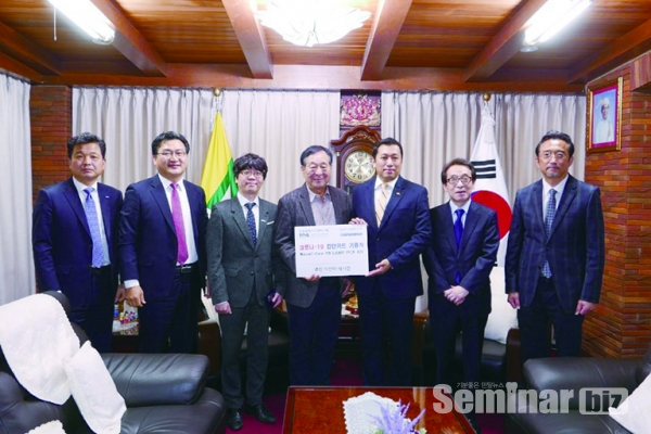 이번 기증은 7000만원 상당의 코로나19 진단키트(Novel-Cov 19 LAMP PCR Kit) 400세트와 KF94 마스크 500장이 기증됐다.