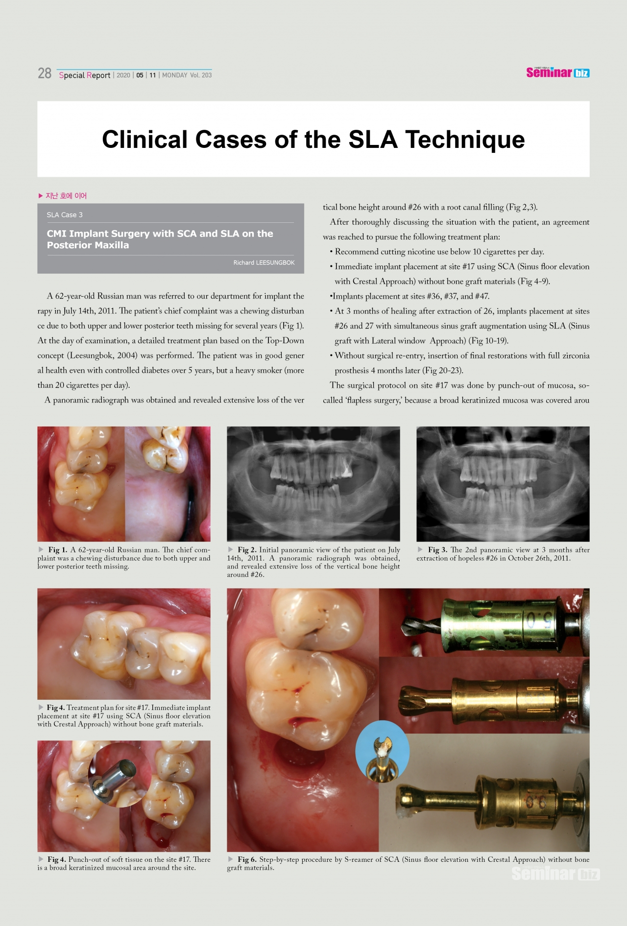 CMI Implant Surgery with SCA and SLA on the Posterior Maxilla 좋아요0훈훈해요0슬퍼요0후속기사 원해요0 Clinical Cases of the SLA Technique 키워드 #SLA Technique #SLA on the Posterior Maxilla #이성복교수 #네오바이오텍 Richard LEE SUNG BOK webmaster@seminarbiz.kr 다른기사 보기 저작권자 © 덴탈뉴스 무단전재 및 재배포 금지 당신만 안 본 뉴스 [알파베러정재욱대표] 좋은 제품 검증된 제품만 모은 알파베러 유한 evertis 임플란트 성공 위한 워크샵 진행 “미용치과 안티에이징이 치과의 블루오션” 덴탈스튜디오, 블랙니들홀더 출시 서울대학교치과병원, 키르기스스탄 장애 어린이위한 사랑의 의료봉사 펼쳐 연송캠퍼스 개관10주년 기념식 및 SID 명예의 전당 제막식 네오바이오텍, 즉시로딩 임플란트 ALX-IT 11월 세미나 전국 진행 [알파베러정재욱대표] 좋은 제품 검증된 제품만 모은 알파베러 개의 댓글 회원로그인 작성자 비밀번호 댓글 내용입력 댓글 정렬 최신순 추천순 답글순 BEST댓글 BEST 댓글 답글과 추천수를 합산하여 자동으로 노출됩니다. 닫기 더보기 댓글삭제 삭제한 댓글은 다시 복구할 수 없습니다. 그래도 삭제하시겠습니까? 비밀번호 닫기 댓글수정 댓글 수정은 작성 후 1분내에만 가능합니다. 본문 / 400 비밀번호 닫기 내 댓글 모음 닫기 주요기사 중국 의료기기 1등급 인허가 취득 점빵치과 고민! 한자리서 해결 완성도높은 투명교정 솔루션 나노라이너 치과의사들의 만성고민 해결 신경치료가 혈당과 지방대사까지 개선 골이식 전략과 덴티움 제품 활용 노하우 공유