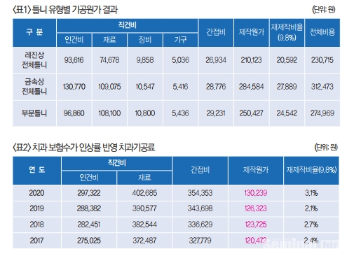 이 기공료는 정부에서 산출한 기공원가에 매년 건강보험정책심의위원회(이하 건정심)의 치과보험수가 인상률을 반영하여 표준 기공료를 산출했다.