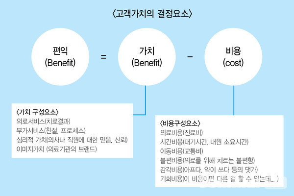 치과는 고객들이 자신의 가치를 극대화 할 수 있는 기준을 가지고 있다는 점을 인식해야 한다. 고객들은 이 기준에 가장 적합한 의료기관을 찾기 위해 노력한다. 그러므로 고객들이 가지고 있는 보편적인 가치기준에 의료기관이 얼마나 가까워질 수 있느냐에 따라 얼마나 많은 고객을 만족시킬 수 있는지가 결정된다.