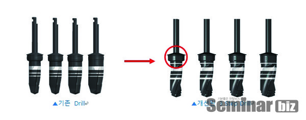 S-Wide Kit의 구성품 중 개선된 제품은 Twist surgical drill, Stopper, Cortical tap 3가지이고, 새롭게 추가된 Dia Marker가 있다.