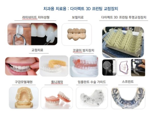 국내에서도 현재 3D 프린팅이 가장 활발한 분야는 바로 치과다. 인체와 직접 연관되기 때문에 기술적 난이도도 높다. 때문에 덴탈에서 사용할 수 있는 소재는 양산성과 안전성이 무엇보다 중요하며 3D 프린팅이 양산에 적용될 수 있는 신소재 개발이 최우선이었다.