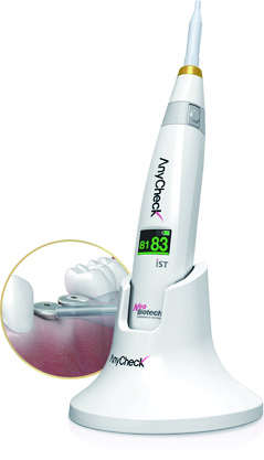 애니체크는 타진식 동요도 측정기로 기존의 자기주파공명방식과 타격 방식의 단점을 개선한 제품이다. 힐링어버트먼트를 제거하지 않아도 돼 한번에 여러 개를 측정할 수 있어 간편하고, Smartpeg와 같은 별도의 도구를 구입하지 않아도 되기 때문에 경제적이다.