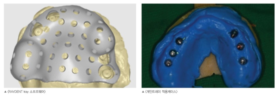 과거에는 이러한 tray를 2차 수술을 행하고 나서 인상채득 후 기공실에 보내 제작하게 했었지만 이제는 이러한 모든 작업을 치과의원내에서 매우 간단하게 만들어 사용하고 있습니다. 또한 환자의 내원횟수를 한 번 줄일 수 있다는 것은 큰 장점이 됩니다.