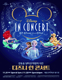 감동을 넘어선 마법의 시간 「디즈니 인 콘서트」는 마법에 걸린것처럼 마냥 행복하고 꿈속에 있는 것 같은 느낌을 들게 한다. 아름다운 오케스트라선율과 완벽한 목소리에 매료되어 보는 내내 감동과 행복의 눈물 을 느낄 것이다.