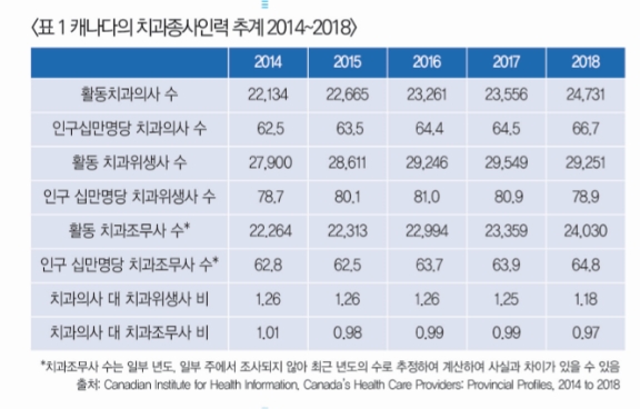 치과계 선거철이 되면 가장 먼저 내세우는 공약 중의 하나가 보조인력 해결문제다. 그 정도로 시급한 과제다. 이에 반해 캐나다의 경우 치과의사 1인당 1 명의 치과조무사가 활동하고 있는 것으로 나타났다.