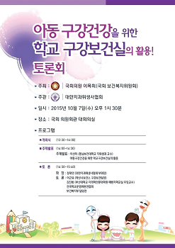 국회 보건복지위원회 소속 새정치민주연합 이목희 의원실이 주최하고 치위협이 주관하는 이번 토론회는 ‘아동 구강건강을 위한 학교 구강보건실의 활용!’을 주제로 10월7일(수) 오후 1시30분부터 국회 의원회관 대강당에서 개최한다.