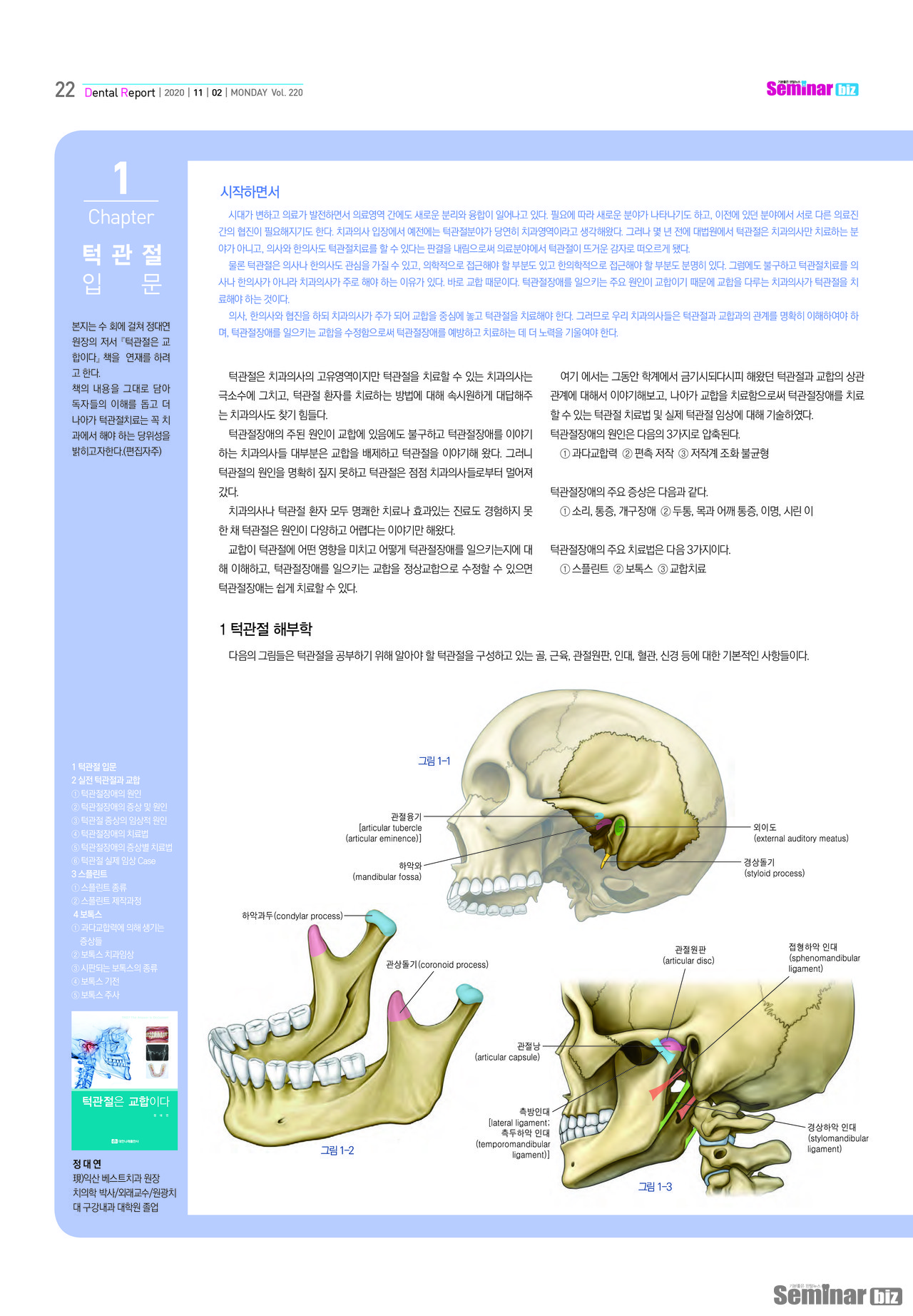 본지는 수 회에 걸쳐 정대연 원장의 저서 『턱관절은 교합이다』 책을 연재를 하려고 한다. 책의 내용을 그대로 담아 독자들의 이해를 돕고 더 나아가 턱관절치료는 꼭 치 과에서 해야 하는 당위성을 밝히고자 한다.(편집자주)