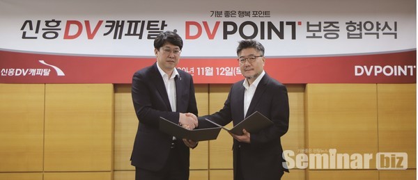 DV mall(www.dvmall.co.kr) 에서 판매되고 있는 DV Point 적립권이 지난 10월 누적 판매 30억 포인트를 돌파하면서 더욱 공신력있는 DV Point 관리를 위해 ㈜신흥DV캐피탈과 협약식을 맺었다.