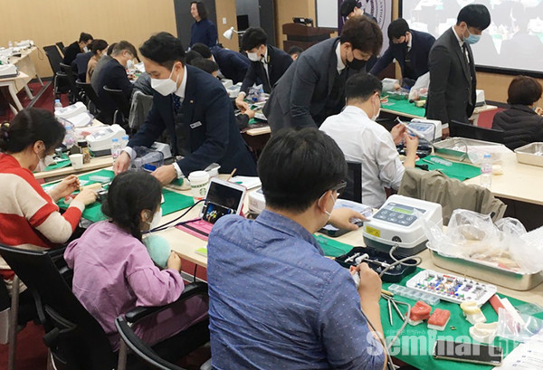 이어 이영한 원장이 △MagiCore를 이용한 Hands-on 을 주제로 임상에 바로 적용할 수 있도록 실습 모형을 활용한 교육을 알차게 준비하여 수강생들의 이해를 도왔다.