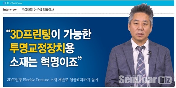 A 그래피는 4차산업의 핵심분야인 3D프린팅소재전문회사로서, 산업소재, 메디칼 소재와 덴탈소재를 개발 제조하고 있다. 특히 그래피는 세계최초로 개발한 영구보철소재, Flexible Denture 소재, 투명교정장치용 소재는 전 세계 치과회사들로부터 각광을 받고 있다.