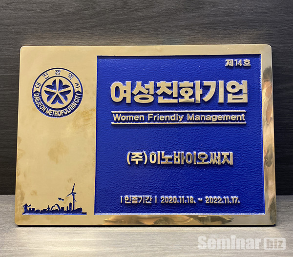 ㈜이노바이오써지(이하 IBS임플란트: 대표 왕제원)가 지난달 18일 대전시에서 지정하는 여성친화기업으로 선정됐다. 여성친화기업은 여성이 일하기 좋은 기업 환경 조성에 앞장 선 기업에 대해 주어지는 상이다.<사진>