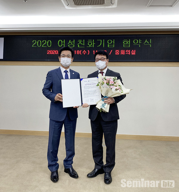 이와 함께 ‘2020 여성친화기업’ 협약 사업을 진행키로 했다. 대전광역시가 주최하고 대전광역시 여성새로일하기센터 주관으로 진행된 이 협약은 여성고용개선 실적, 모성보호 운영실태, 일.가정 양립 지원 실태, 여성 능력개발을 평가 항목으로 선정했다.