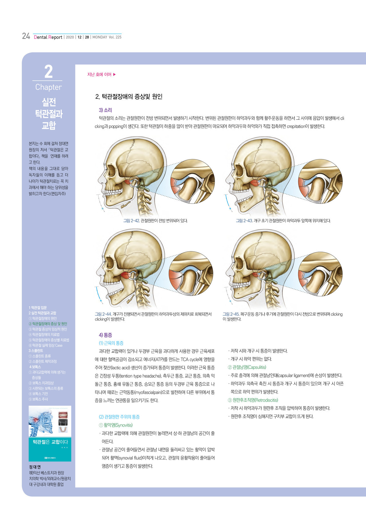 턱관절장애의 증상및 원인 좋아요3훈훈해요0슬퍼요1후속기사 원해요0 정대연원장의 턱관절은 교합이다(5) 정대연 원장의 턱관절은 교합이다(4) 정대연 원장의 턱관절은 교합이다(3) 정대연 원장의 턱관절은 교합이다(2) 정대연 원장의 턱관절은 교합이다(1) 정대연 원장의 턱관절은 교합이다(7) 정대연 원장의 턱관절은 교합이다(8) 정대연 원장의 턱관절은 교합이다(9) 정대연 원장의 턱관절은 교합이다(10) 정대연 원장의 턱관절은 교합이다(11) 정대연원장의 턱관절은 교합이다(14) 키워드 #정대연원장 #턱관절은교합이다 #대한나래출판사 #익산베스트치과 #턱관절입문 #실전턱관절과교합 #턱관절장애의원인 #턱관절장애의증상 #턱관절장애치료법 #관절원판 #퇴행성골관절염 #개구장애 #세미나비즈 #치과전문지세미나비즈 #치과의사 #치과 정대연 원장 webmaster@seminarbiz.kr 다른기사 보기 저작권자 © 덴탈뉴스 무단전재 및 재배포 금지 당신만 안 본 뉴스 [알파베러정재욱대표] 좋은 제품 검증된 제품만 모은 알파베러 유한 evertis 임플란트 성공 위한 워크샵 진행 “미용치과 안티에이징이 치과의 블루오션” 덴탈스튜디오, 블랙니들홀더 출시 서울대학교치과병원, 키르기스스탄 장애 어린이위한 사랑의 의료봉사 펼쳐 연송캠퍼스 개관10주년 기념식 및 SID 명예의 전당 제막식 네오바이오텍, 즉시로딩 임플란트 ALX-IT 11월 세미나 전국 진행 [알파베러정재욱대표] 좋은 제품 검증된 제품만 모은 알파베러 개의 댓글 회원로그인 작성자 비밀번호 댓글 내용입력 댓글 정렬 최신순 추천순 답글순 BEST댓글 BEST 댓글 답글과 추천수를 합산하여 자동으로 노출됩니다. 닫기 더보기 댓글삭제 삭제한 댓글은 다시 복구할 수 없습니다. 그래도 삭제하시겠습니까? 비밀번호 닫기 댓글수정 댓글 수정은 작성 후 1분내에만 가능합니다. 본문 / 400 비밀번호 닫기 내 댓글 모음 닫기 주요기사 중국 의료기기 1등급 인허가 취득 점빵치과 고민! 한자리서 해결 완성도높은 투명교정 솔루션 나노라이너 치과의사들의 만성고민 해결 신경치료가 혈당과 지방대사까지 개선 골이식 전략과 덴티움 제품 활용 노하우 공유