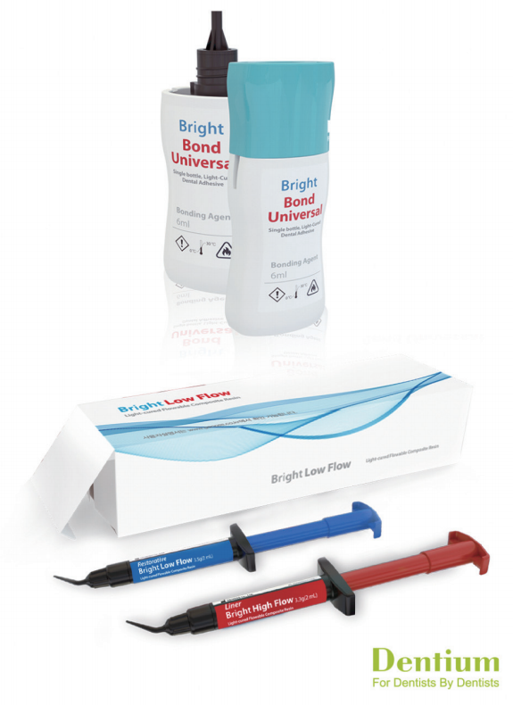 덴티움이 출시한 Bright Resin 시리즈는 Self-etching과 Bonding 기능이 하나로 통합된 7세대 본딩제로 사용하기 편한 제품이다. 또한 교합조정이 편리해 환자들에게도 편안하다.