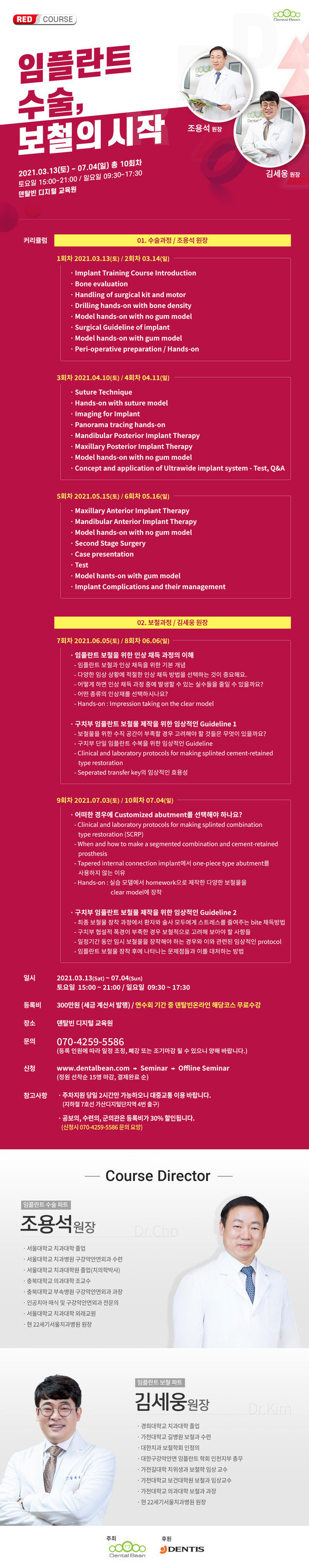 덴탈빈, 3/13일부터 10회 간 덴탈빈 RED 코스로 임플란트 수술과 보철 기본 정립