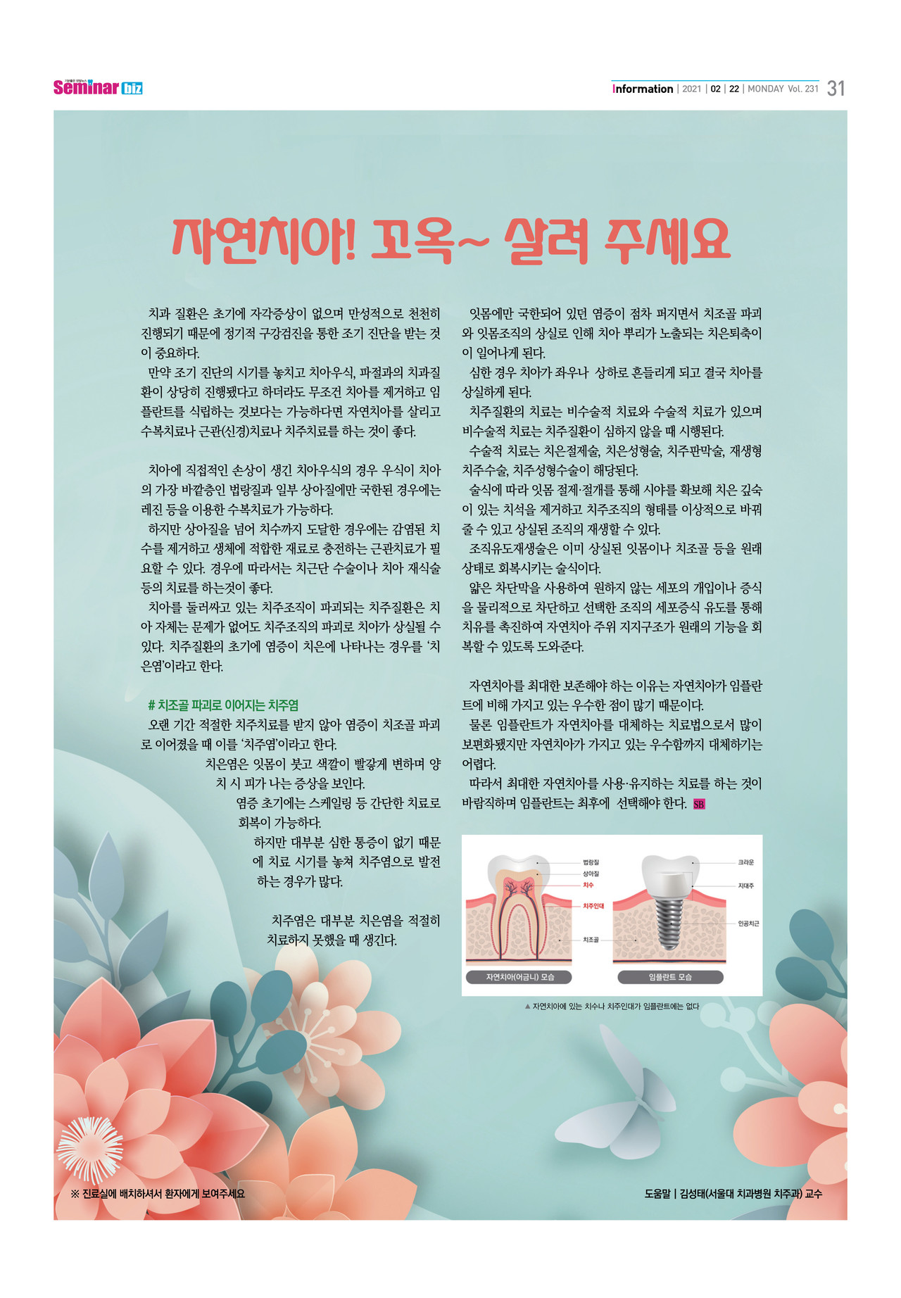 만약 조기 진단의 시기를 놓치고 치아우식, 파절과의 치과질환이 상당히 진행됐다고 하더라도 무조건 치아를 제거하고 임플란트를 식립하는 것보다는 가능하다면 자연치아를 살리고 수복치료나 근관(신경)치료나 치주치료를 하는 것이 좋다.