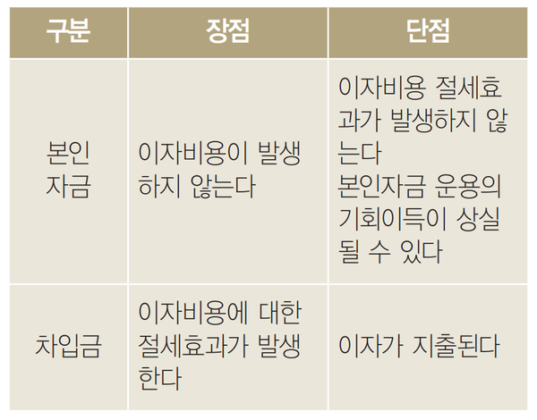 본인 자금이 유리한지, 차입금이 유리한지에 대한 의사결정은 본인 자금을 선택한 경우의 자금흐름과 차입금을 이용한 경우의 자금흐름을 비교해보면 답을 얻을 수 있다.