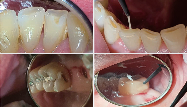 <그림>은 하악 전치부의 설측 파절이다. Attrition 후 저작 시 충격에 파절이 오는 매우 흔한 파절 부위이고 마땅히 수복할 재료도 없다. 대강 갈아서 환자에게 사용하시라고 말씀드리고 싶지만 생각보다 많이 삭제해야 하고 심미적으로 치아가 짧게 보이는 문제가생긴다. 그래서 자주 떨어져도 레진으로 붙이는게 좋다.