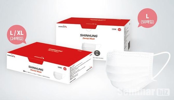 ㈜신흥이 작년 출시한 ‘신흥 덴탈마스크’가 3월에 패키지를 새롭게 리뉴얼 하고 이어밴드가 1cm 더 길어진 XL 사이즈를 추가했다.