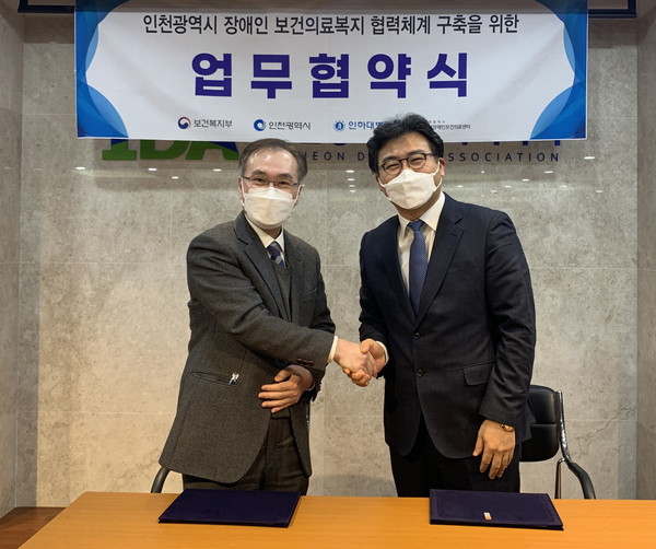 인천광역시치과의사회(회장 이정우, 이하 인천지부)와 인천지역장애인보건의료센터(센터장 정한영)는 2월 5일 인천지부 회관에서 업무협약을 체결했다.