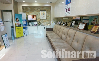 실평수 50평에 6대의 체어를 갖추고 있는 대성치과는 체어 색깔이 모두 보라색으로 이색적인 느낌이다.