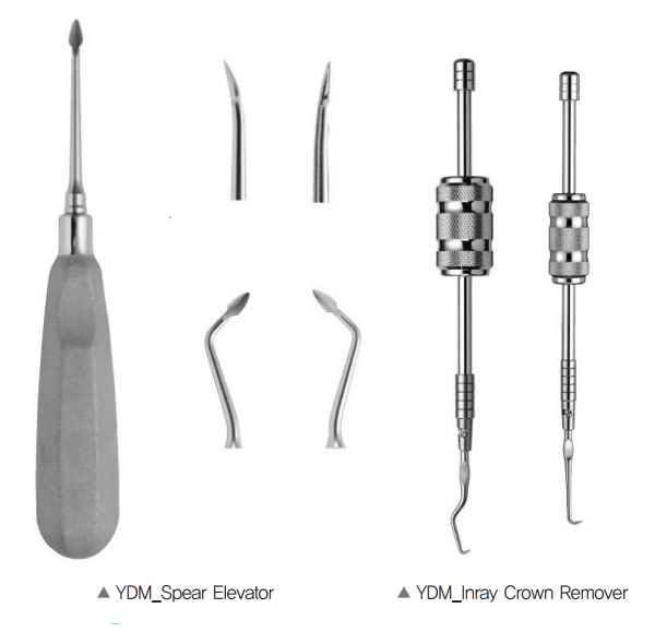 발치를 손쉽게 하기 위해 치아를 치주인대에서 느슨하게 할 때 사용하는 SPEAR ELEVATOR는 화살촉 모양의 팁이 스푼 형태로 홈이 파여져 있어서 적은 힘으로도 치주인대 삽입과 절단이 쉽다. SPEAR ELEVATOR는 4가지 팁 모양이 있다.