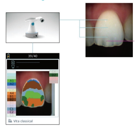 또한 몇 초 만에 완벽한 색상을 분석할 수 있어 투자대비 수익성을 높일 수 있는 경제적인 제품이다. 치아색상을 픽셀단위로 매우 정확하게 분석해 주며 정보손실 없이 디지털 파일을 공유할 수 있어 편리하다.