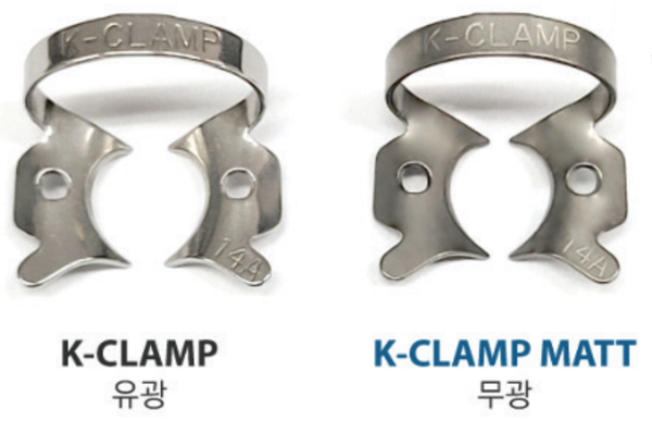 ㈜신흥이 제조 판매하는 K-CLAMP는 유광으로 총 31종의 다양하고 대중적인 모양으로 치료할 치아위치와 모양에 따라 선택해 사용이 가능하다. 제품의 회복 탄력성이 우수해 사용하기 편리하며 내구성이 좋은 것도 특징이다. 제품 끝 부위가 부드럽게 마감처리 돼 안전하게 사용이 가능하며 구강 내 부식 저항성이 우수하다.