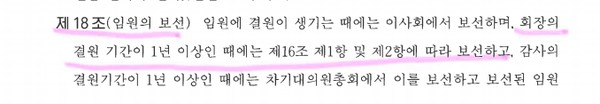 한편, 선관위 위원이 구성되면 오는 24일 이전에 보걸선거공고를 진행해야 한다. 오는 18일 이사회에서 선관위위원구성이 통과될 것으로 보인다.