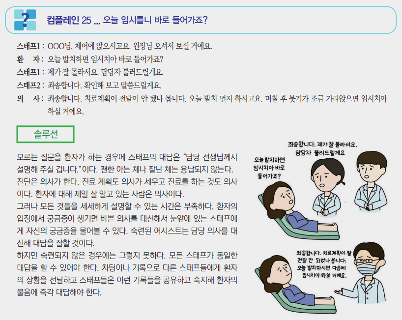 치과 컴플레인 사례집 컴플레인 슈팅은 20년간 치과를 운영해 온 이도훈 원장의 경험을 토대로 솔루션을 제공해 주는 책이다. 대한나래출판사의 컴플레인 슈팅 책 일부를 본 지에 게재해 치과경영에 대한 꿀팁을 주고자 한다. (편집자 주)