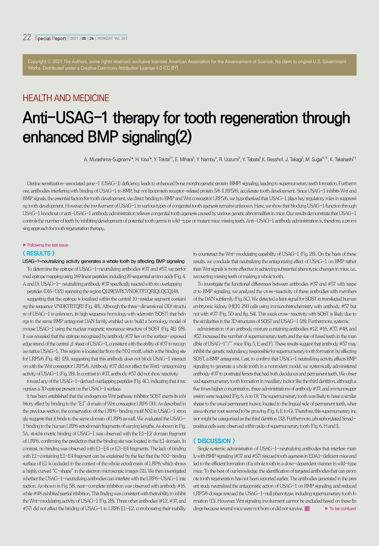 Anti-USAG-1 therapy for tooth regeneration through enhanced BMP signaling MCPP를 이용한 비발치 교정법 Anti-USAG-1 therapy for tooth regeneration through enhanced BMP signaling (3)