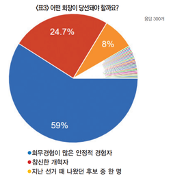 # 회무경험 많은 안정적 경험자가 회장 돼야 59%