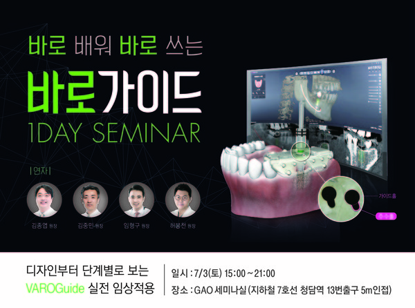 이번 원데이 세미나는 환자 내원부터 진료 스텝의 역할, 바로가이드 워크플로우와 전용킷 사용법, 특히 플래닝을 중점적으로 교육하고 직접 가이드를 제작해 식립까지 자세한 내용이 소개된다.