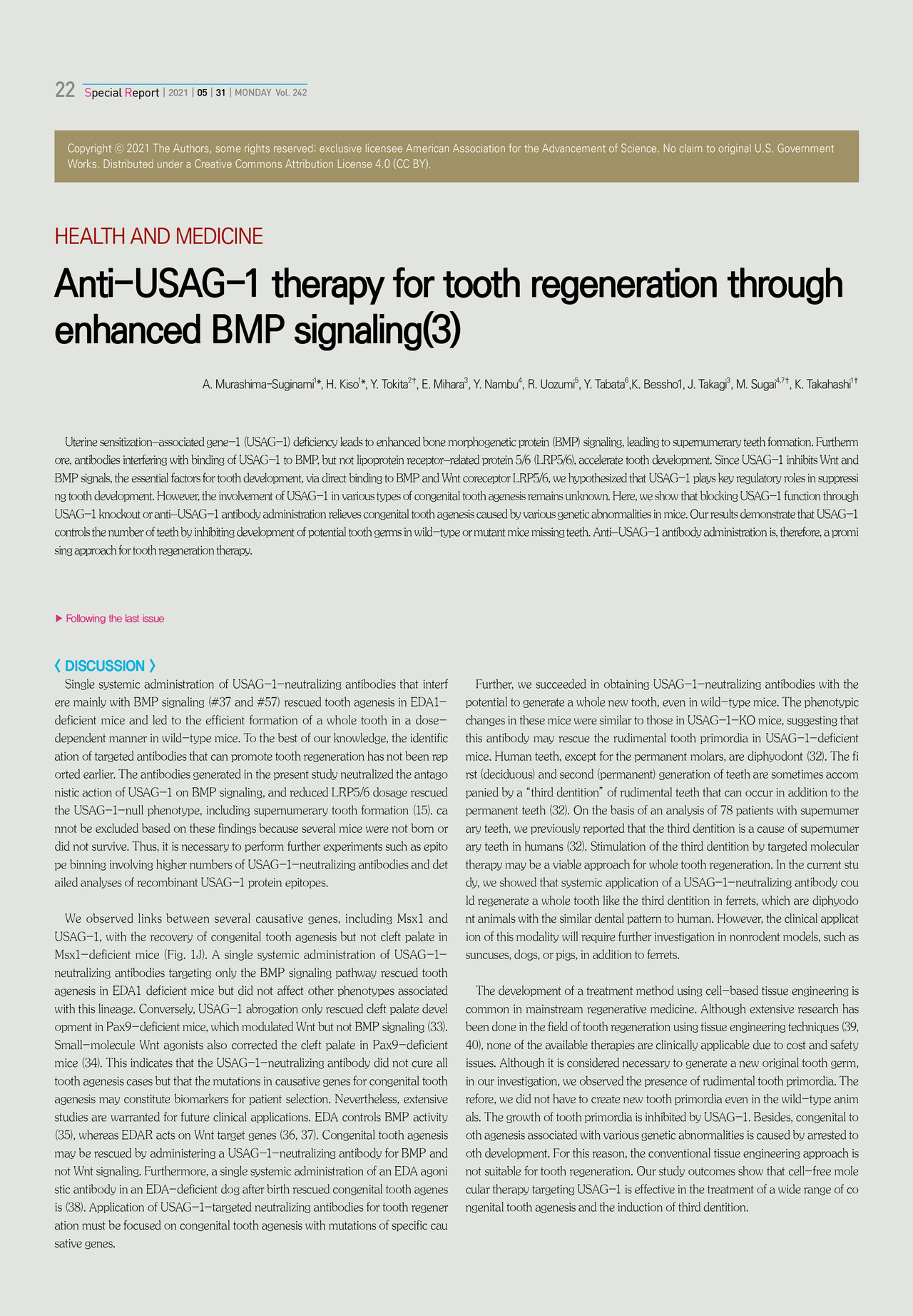 Anti-USAG-1 therapy for tooth regeneration through enhanced BMP signaling (2) Anti-USAG-1 therapy for tooth regeneration through enhanced BMP signaling