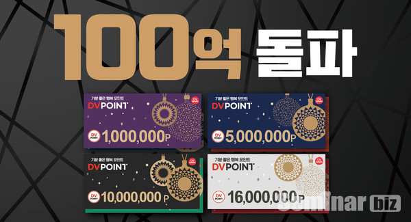 ‘기분 좋은 행복 포인트’ DV Point 적립권이 누적 판매 100억을 돌파했다. 이는 총 4,229명이 구매한 것으로 지난해 12월 누적판매 50억 달성 이후 6개월 만이다.