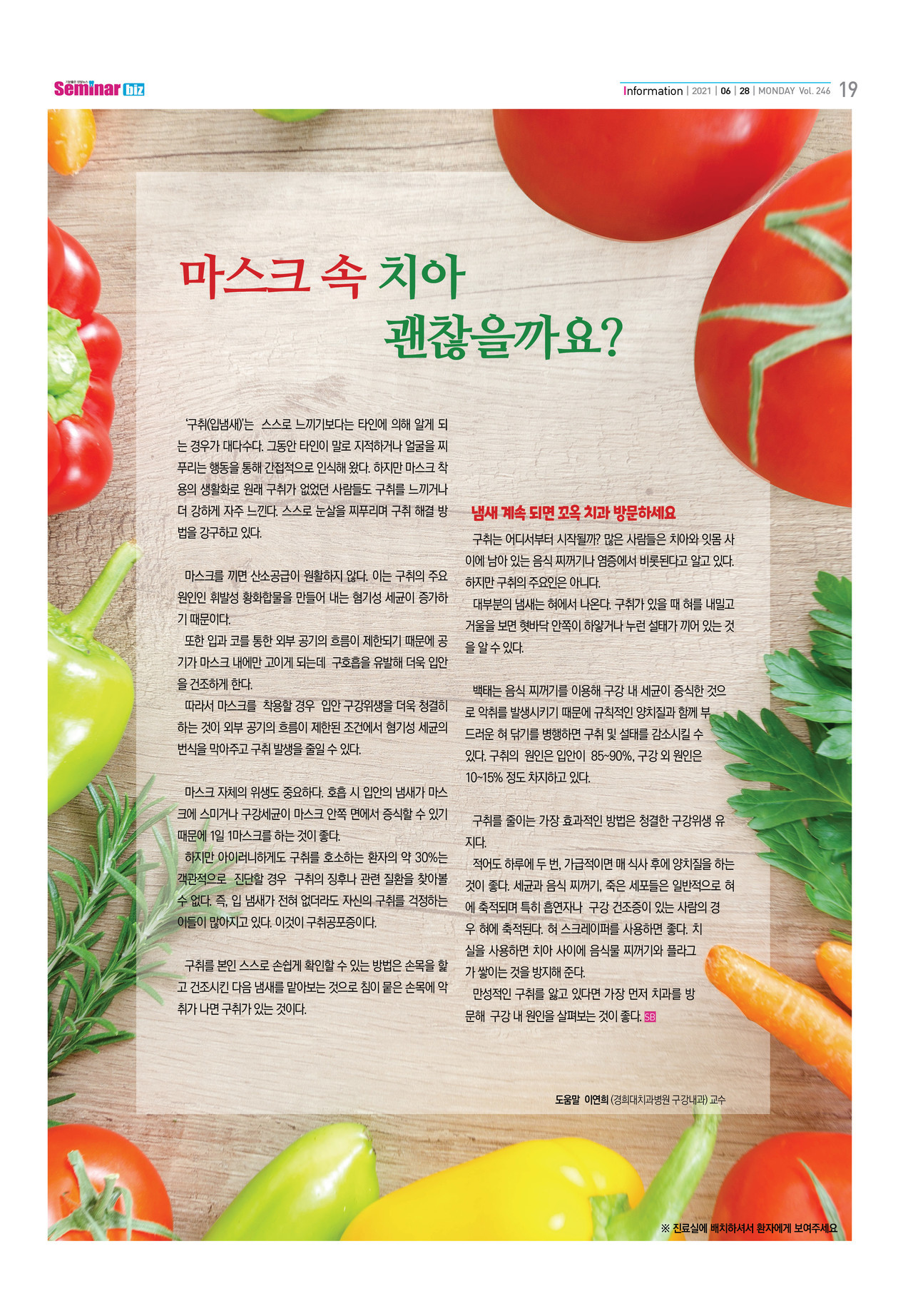 ‘구취(입냄새)’는 스스로 느끼기보다는 타인에 의해 알게 되는 경우가 대다수다. 그동안 타인이 말로 지적하거나 얼굴을 찌푸리는 행동을 통해 간접적으로 인식해 왔다.