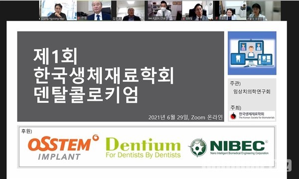 한국생체재료학회(회장 김천호, 한국원자력의학원)가 주최한 제1회 덴탈콜로키엄이 지난 29일(화) 오후 4시 30분 온라인 줌(zoom)을 통해 개최됐다. 김천호 회장의 인사말과 구 영 임상치의학연구회 위원장 경과보고가 이어졌다.
