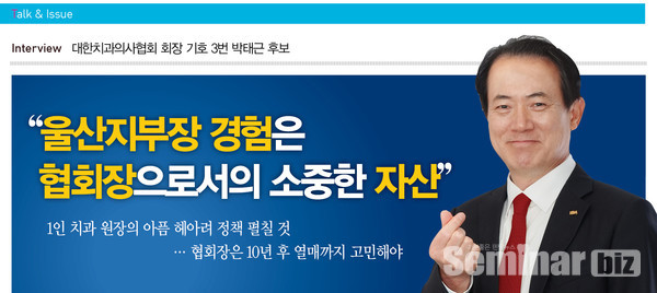 1인 치과 원장의 아픔 헤아려 정책 펼칠 것 ...협회장은 10년 후 열매까지 고민해야